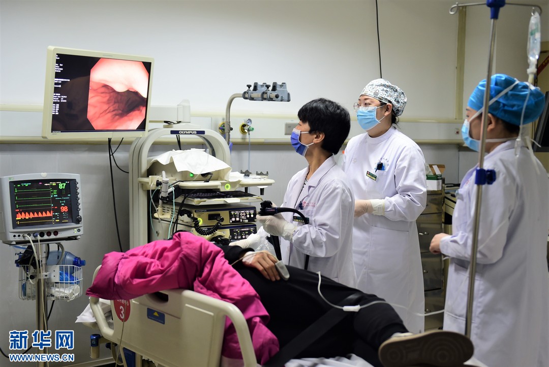 12月16日,滄州市人民醫(yī)院內(nèi)鏡中心醫(yī)務(wù)人員為患者進(jìn)行上消化道腫瘤篩查。新華網(wǎng)發(fā)(傅新春 攝)